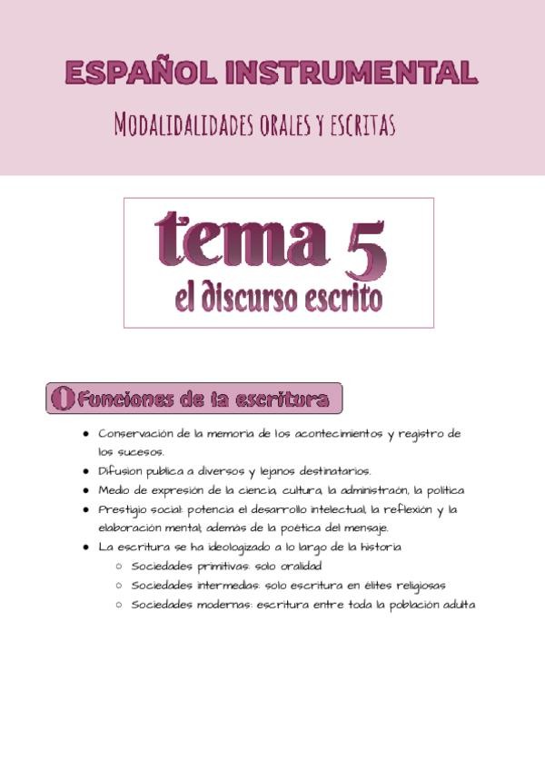 TEMA 5: EL DISCURSO ESCRITO Recopilación de las diapositivas sobre el discurso escrito y el texto académico