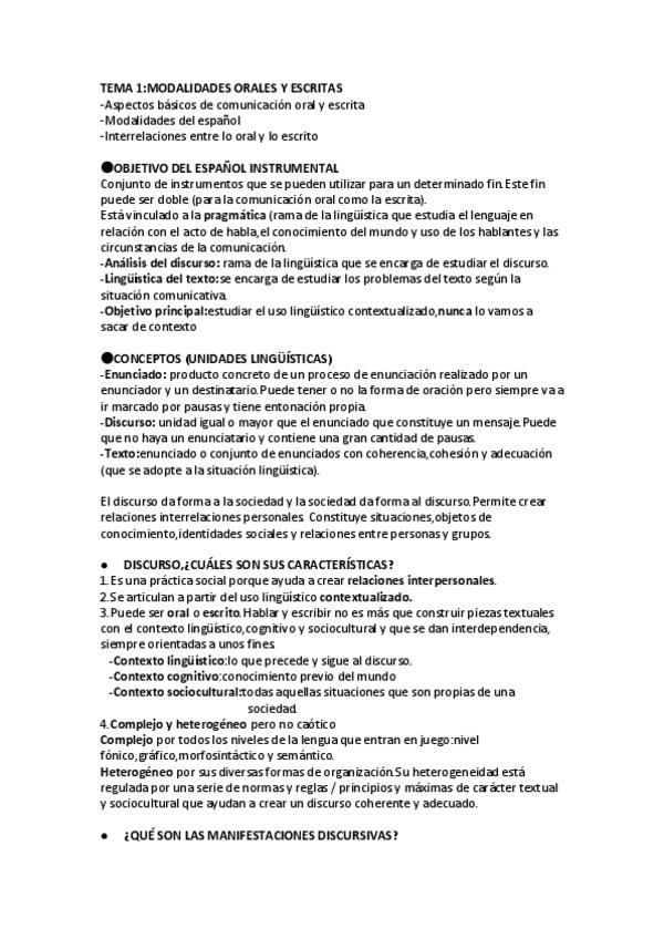 He publicado nuevos apuntes de 1º ESPAÑOL INSTRUMENTAL:MODALIDADES ORALES Y ESCRITAS: TEMA-1.pdf