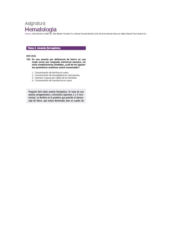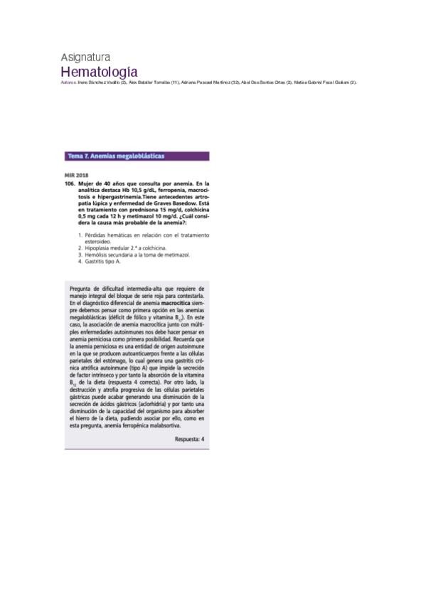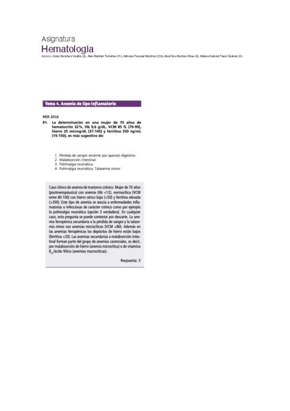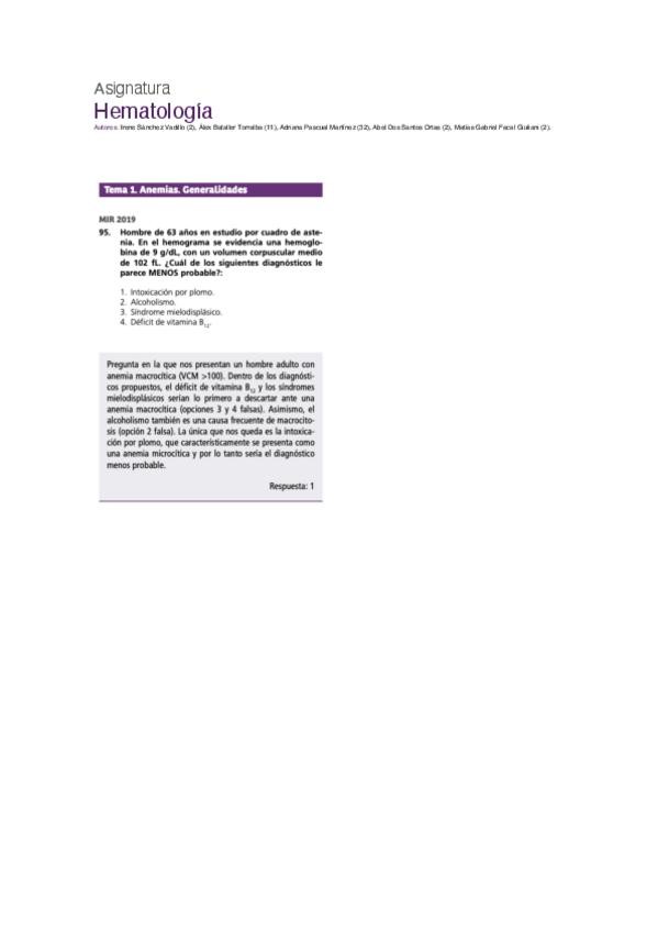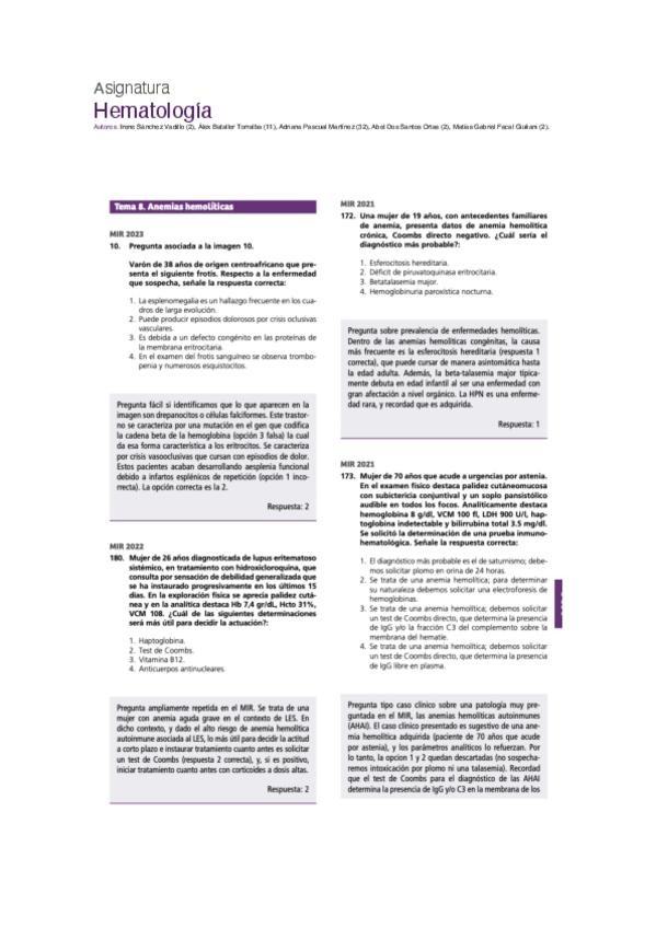 PREGUNTAS DE MIR DE LOS ÚLTIMOS 1O AÑOS DE LA ASIGNATURA DE HEMATOLOGÍA, MUY ÚTILES PARA REFORZAR EL ESTUDIO