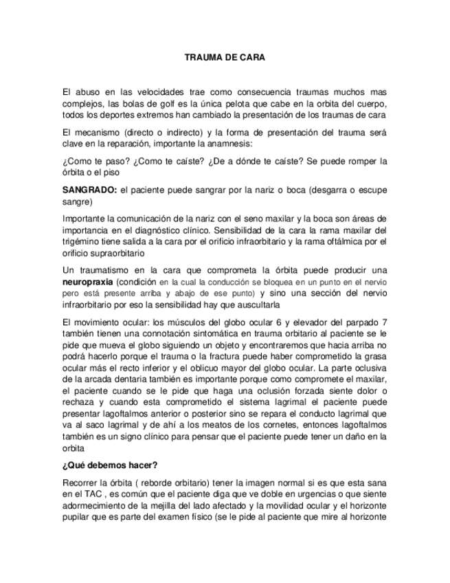 TRAUMA DE CARA