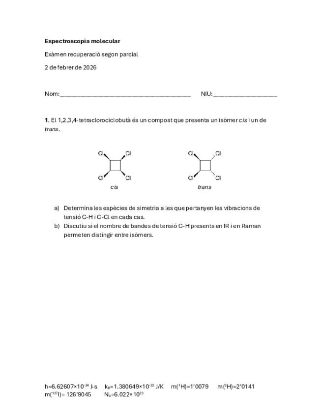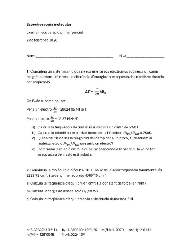 He publicado nuevos ejercicios de 3º Espectroscòpia Molecular: Problemes-primer-parcial.pdf