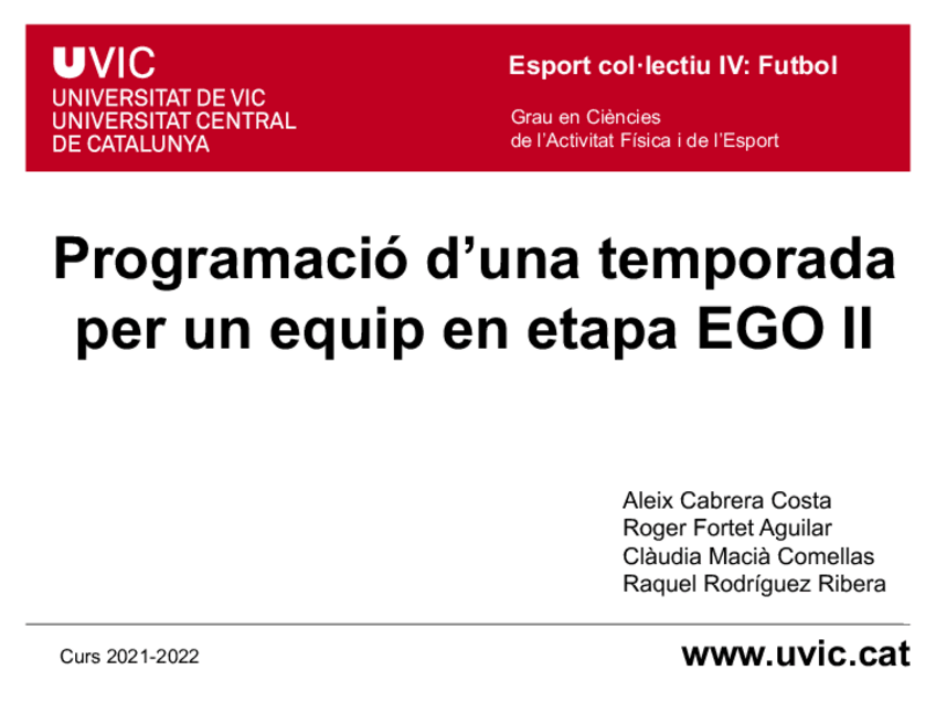 He publicado nuevos trabajos de 2º Esport Col·lectiu IV. Futbol: Grup11A2Treball-Programacio-EGO-II.pdf