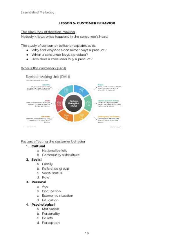 He publicado nuevos apuntes de 1º Essentials of Marketing: LESSON-5-CUSTOMER-BEHAVIOR.pdf