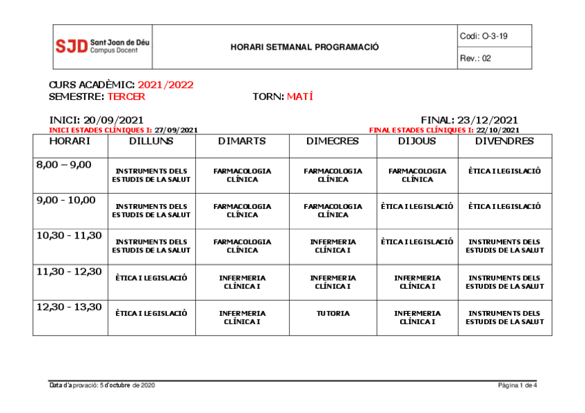 He publicado nuevos apuntes de 2º Estades Cliniques I: Horario