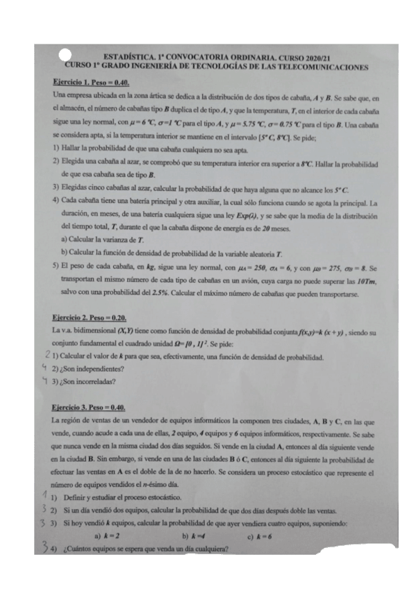 Enunciados de una convocatoria de Febrero de Estadística