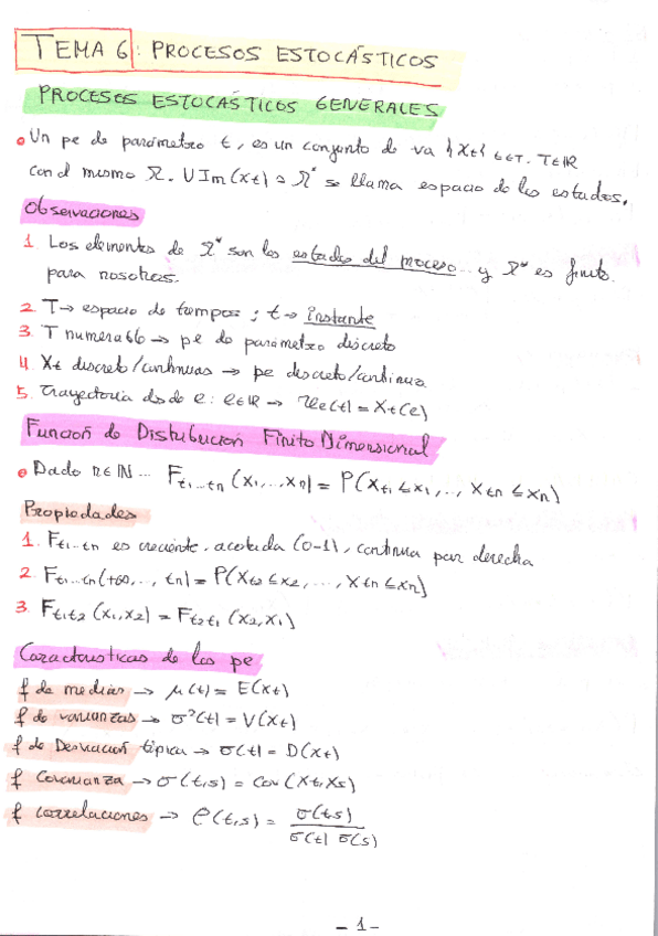 Fórmulas temas 1. DESCRIPCIÓN DE DATOS 2. PROBABILIDAD 3. VARIABLES ALEATORIAS (discretas y continuas). Hoja de colores: Hoja de 1 cara con todas las fórmulas importantes.