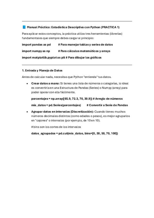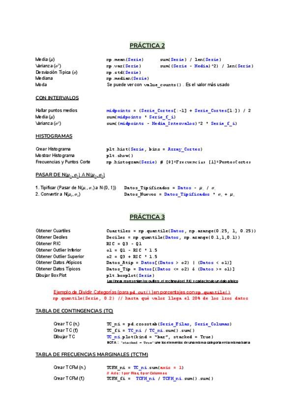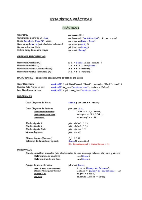 Resumen de las primeras 4 prácticas de Estadística, con todo lo que hace falta saber, explicaciones y demás sobre la primera parte de prácticas.