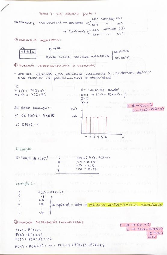 Apuntes tema por tema de la parte 1 de estadística. Combinatoria, probabilidad y variable aleatoria.
