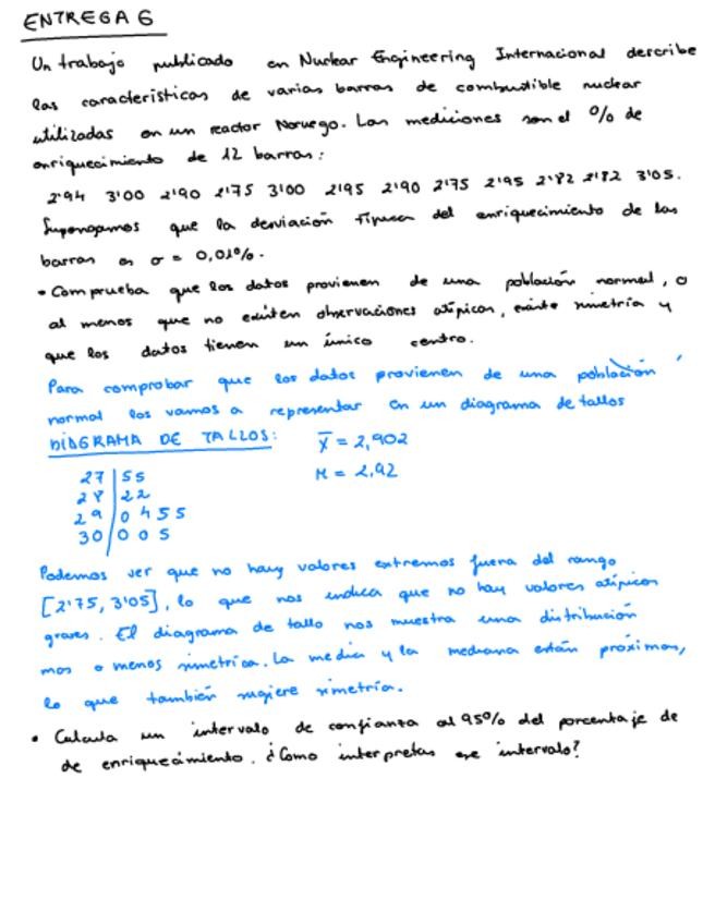 Examen de estadística de enero de 2013 resulto y completo. Primero está el enunciado y al final resuelto con el procedimiento.