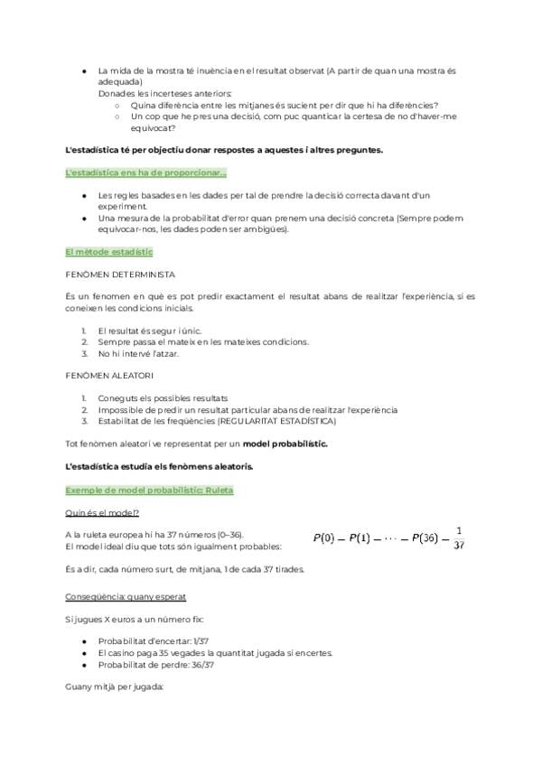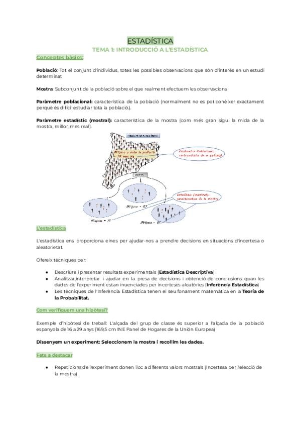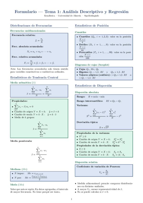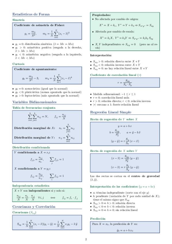 FORMULARI ESTADÍSTICA 1r PARCIAL (amb tot el temari condensat en un únic full din. A4)