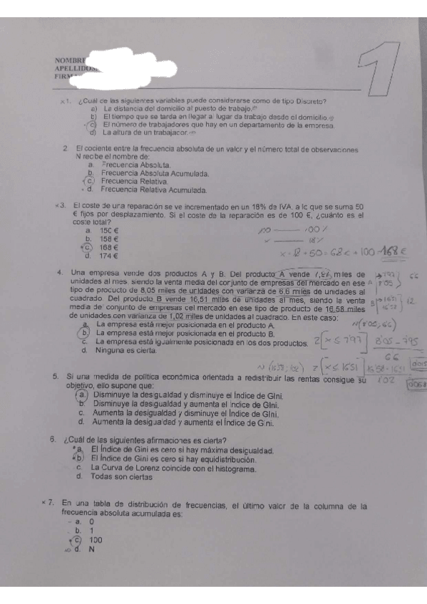 He publicado nuevos examenes de 1º Estadística : Fotos del Examen