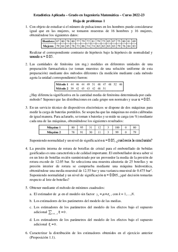He publicado nuevos ejercicios de 3º Estadística Aplicada: 1_Hoja 1 EAP.pdf