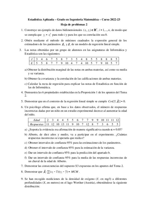 He publicado nuevos ejercicios de 3º Estadística Aplicada: 2_Hoja 2 EAP.pdf