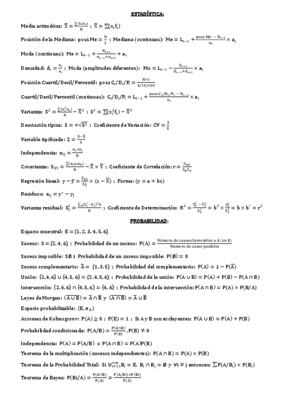 Todas las formulas que se utilizan a lo largo de la asignaturas en una hoja de dos caras