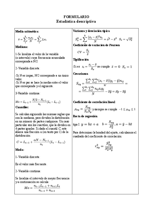 Todas las formulas que se utilizan a lo largo de la asignaturas en una hoja de dos caras