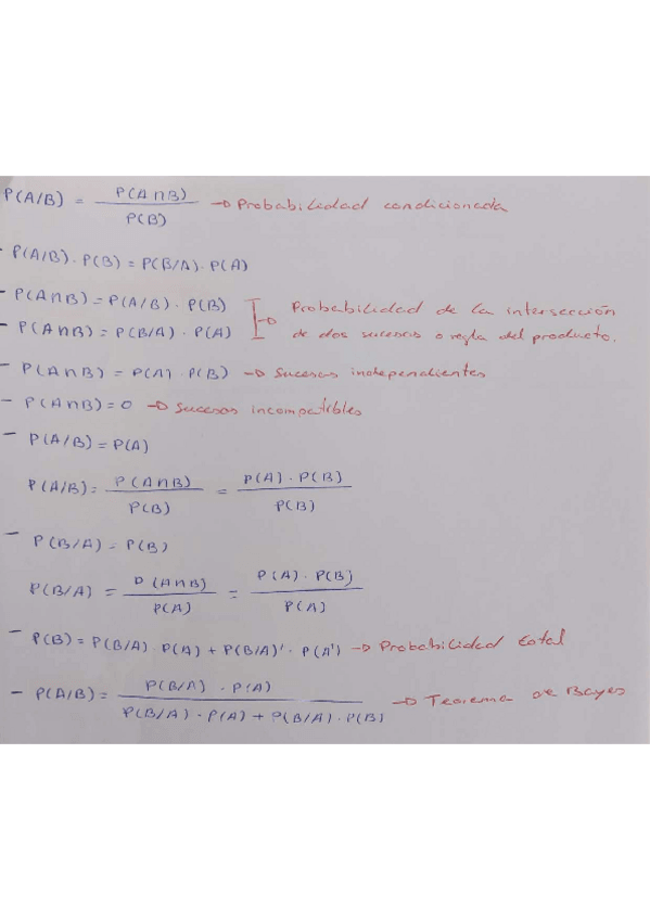 Fórmulas para ejercicios de probabilidad