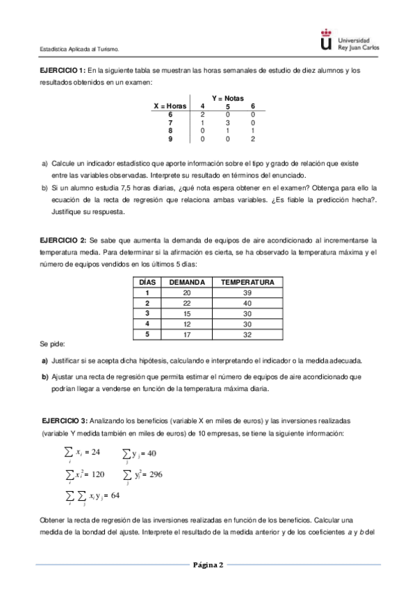 He publicado nuevos ejercicios de 1º Estadistica Aplicada Al Turismo: Ejerc-Regresion-y-correlacion-T7.pdf
