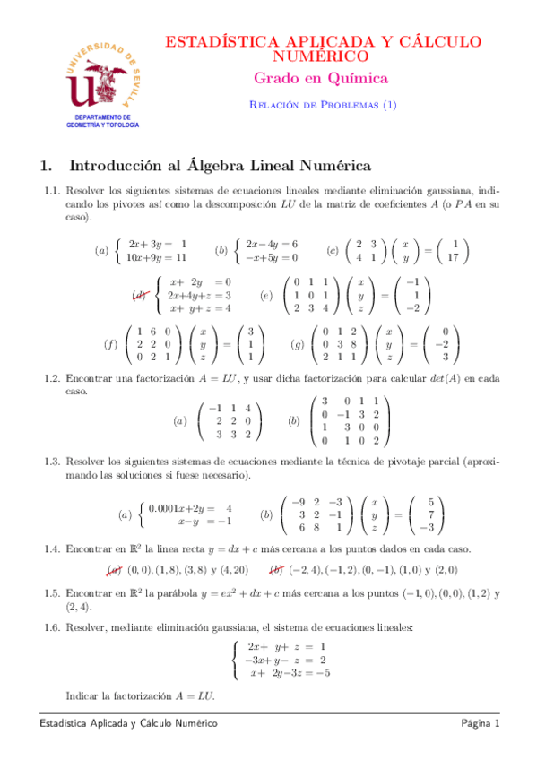 He publicado nuevos ejercicios de 1º Estadística Aplicada y Cálculo Numérico: Ejercicios Seminarios Pablo