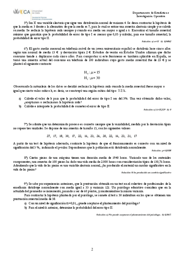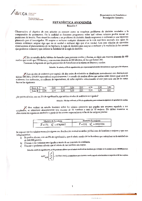 He publicado nuevos apuntes de 2º Estadística Avanzada: relación 4 con soluciones