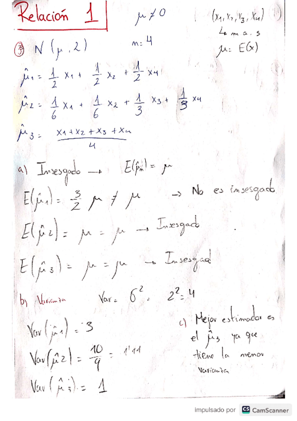 Relación 1 y 2 de ejercicios de estadísticas resueltos