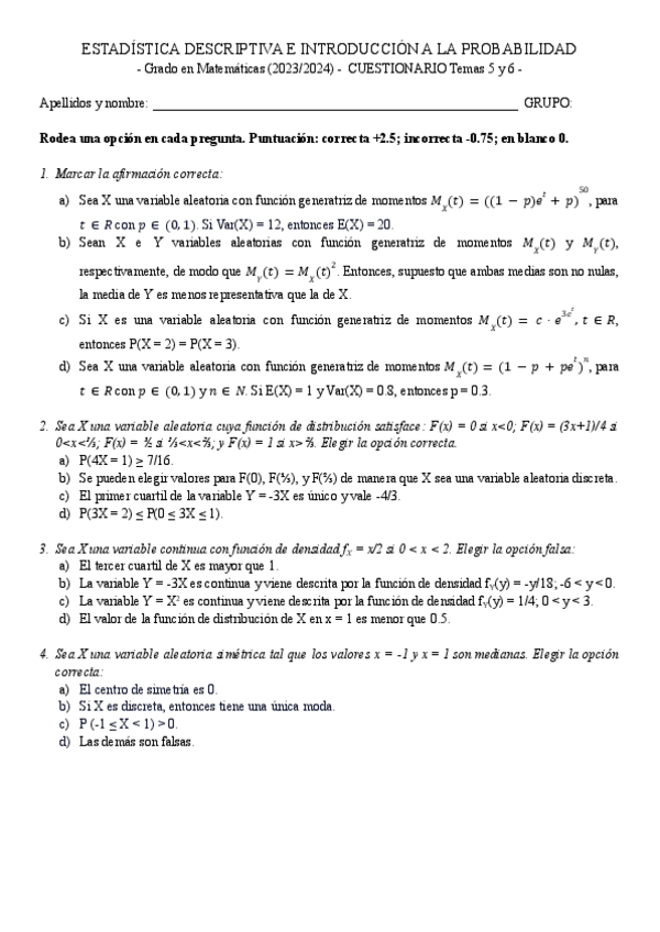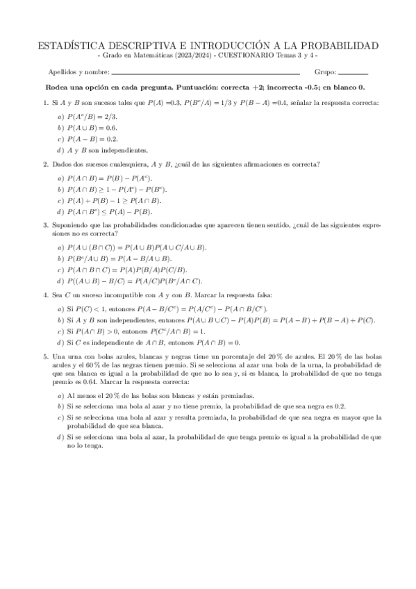 He publicado nuevos examenes de 1º ESTADÍSTICA DESCRIPTIVA E INTROD.A LA PROBABILIDAD: Parcial-3-temas-5-y-6-202324.pdf