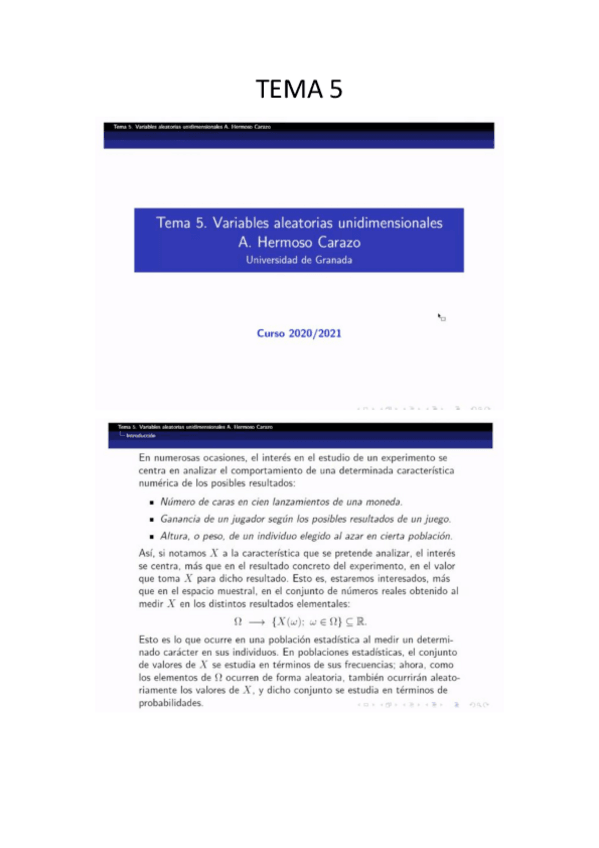 Resumen del tema de probabilidad de VARIABLES ALEATORIAS completo