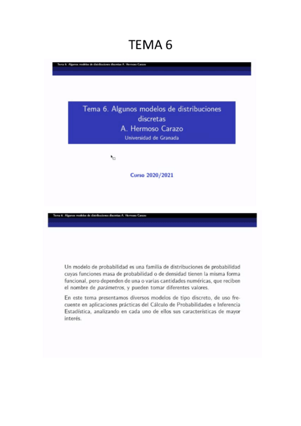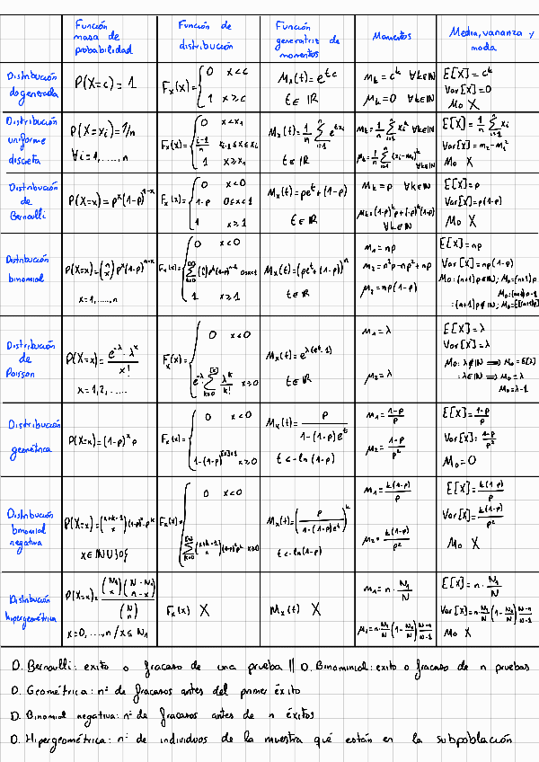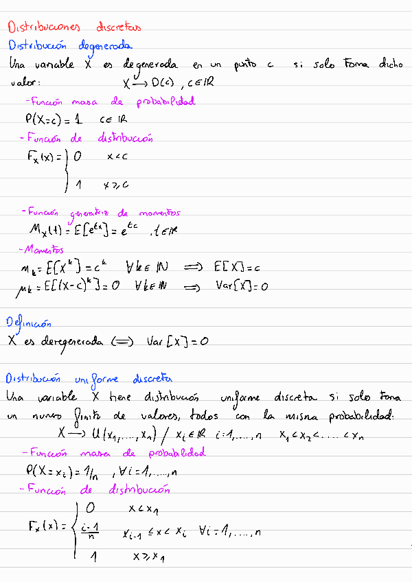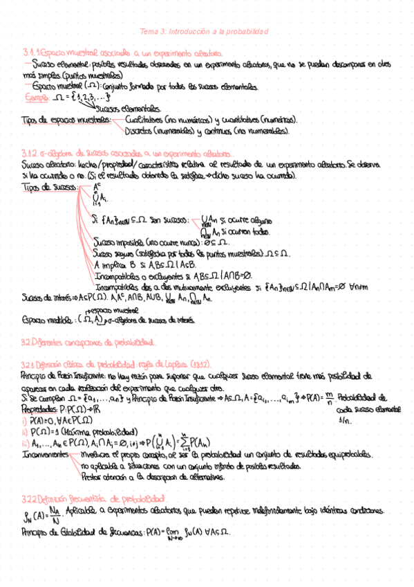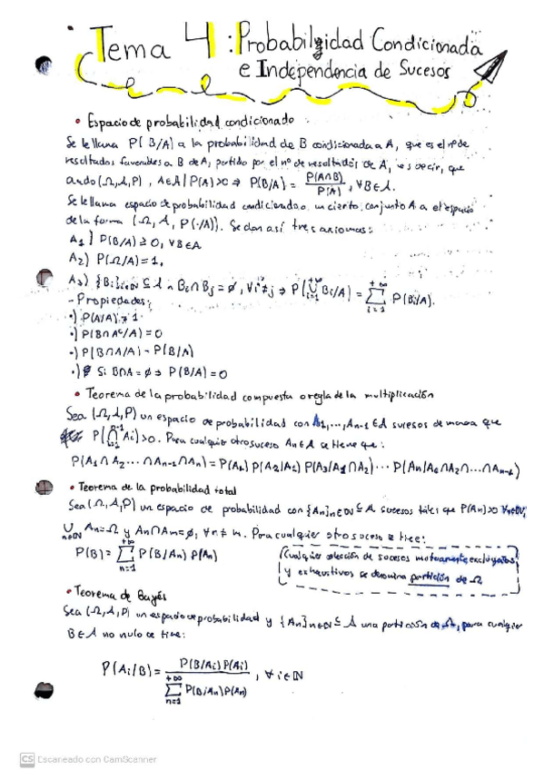 Resúmenes de los temas 3 y 4 de probabilidad que incluye un apartado de demostraciones de cada uno de los temas