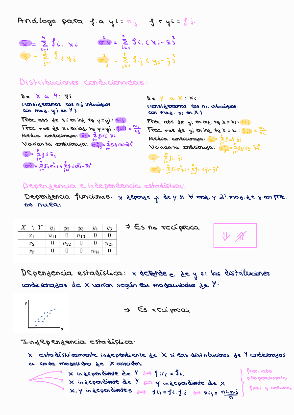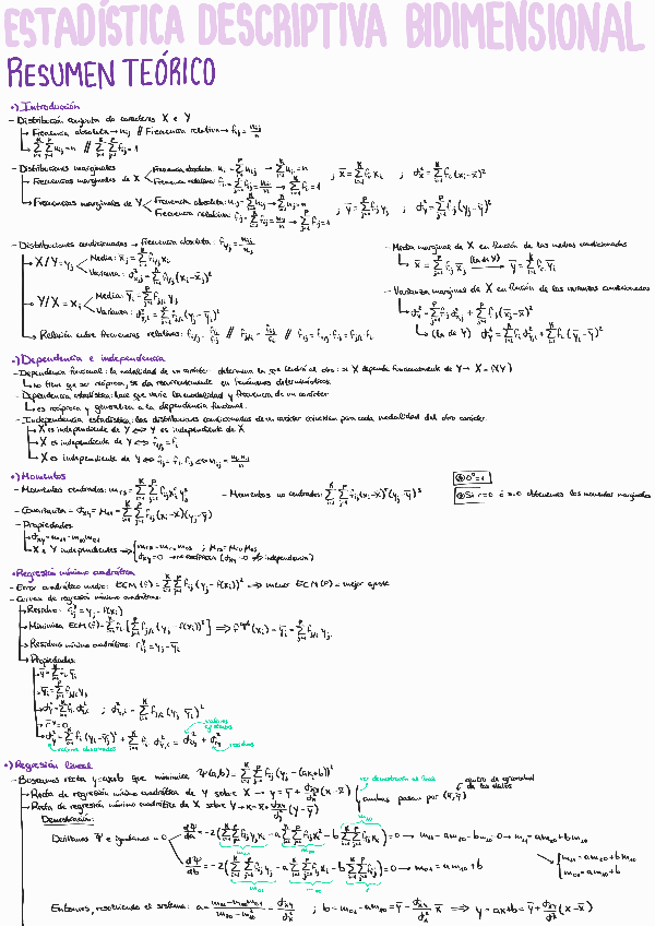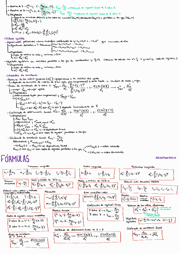 Resumen de estadística bidimensional que también incluye un recopilatorio de las fórmulas más importantes