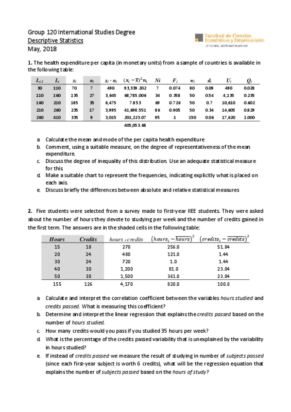 He publicado nuevos examenes de 1º Estadística Descriptiva: Examen Mayo 2018 español