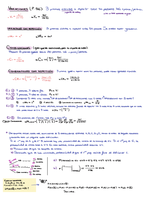 Teorema de bayes teorema de la probabilidad total probabilidad condicionada métodos de cálculo permutaciones variaciones combinaciones