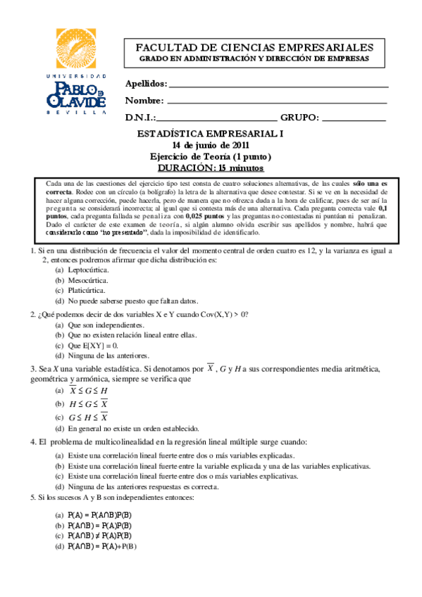 He publicado nuevos apuntes de 2º Estadística Empresarial I: EXAMEN TEST