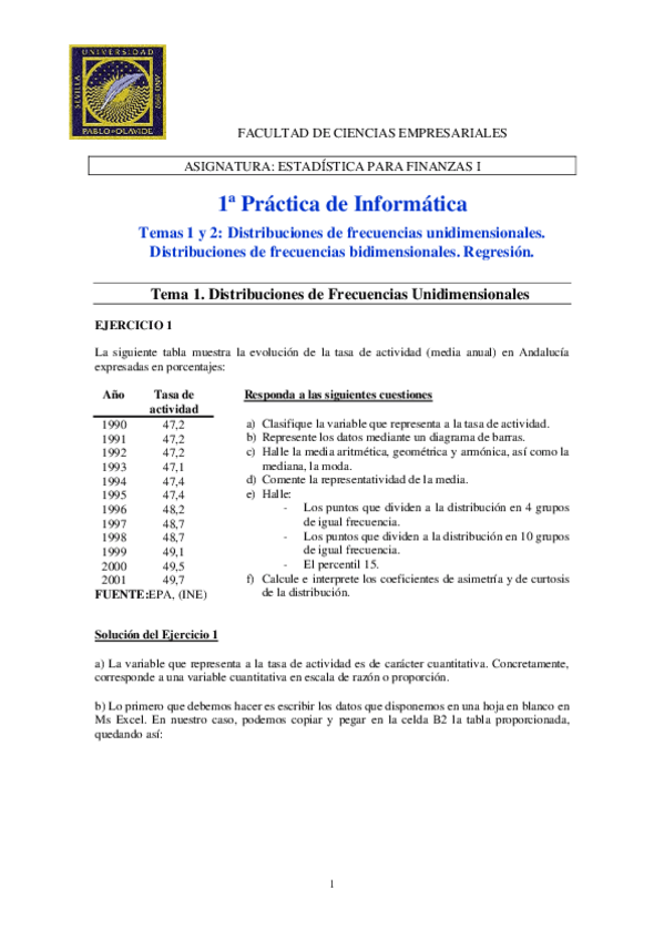 He publicado nuevos practicas de 2º Estadística Empresarial I: Práctica Informática Estadística I