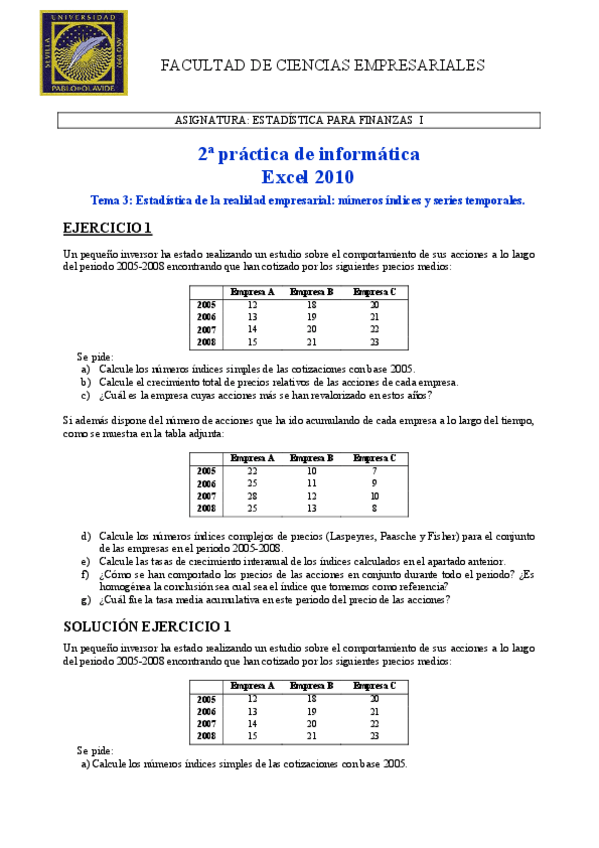 He publicado nuevos practicas de 2º Estadística Empresarial I: Excell