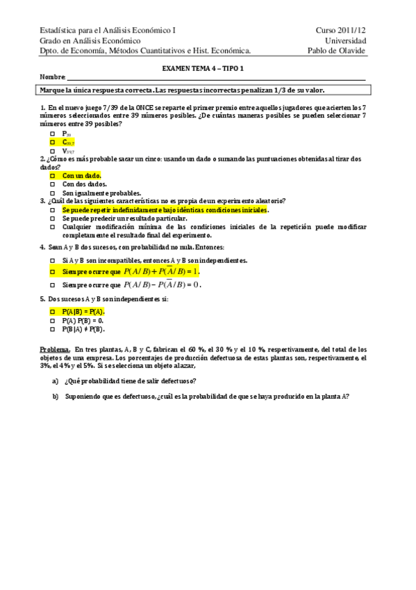 He publicado nuevos examenes de 2º Estadística Empresarial I: Exámenes Estadística I