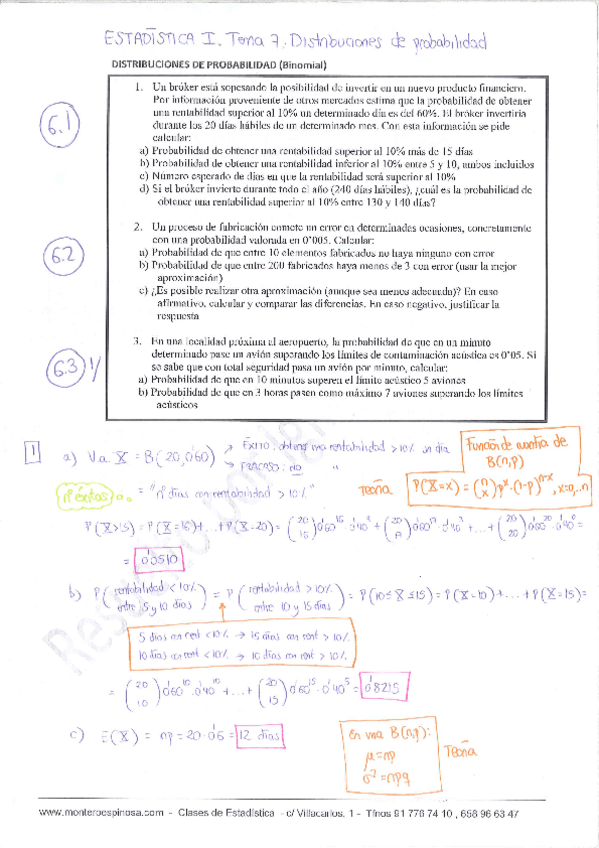 He publicado nuevos ejercicios de 3º Estadística Empresarial I: 06PROBLEMASVICaracteristicas-de-las-distribuciones-de-probabilidad.pdf