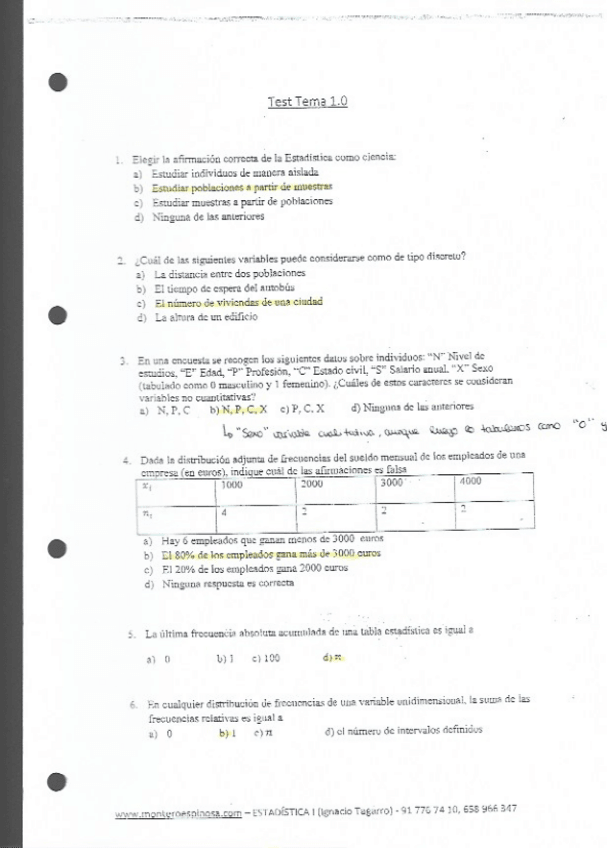 He publicado nuevos examenes de 3º Estadística Empresarial I: Preguntas-Test.pdf