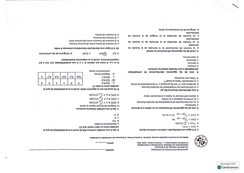 EXÁMENES ESTADÍSTICA II