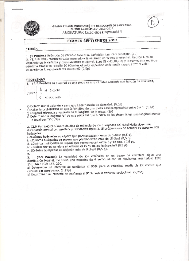 He publicado nuevos examenes de 2º Estadística Empresarial Ii: SEPTIEMBRE-2012.pdf