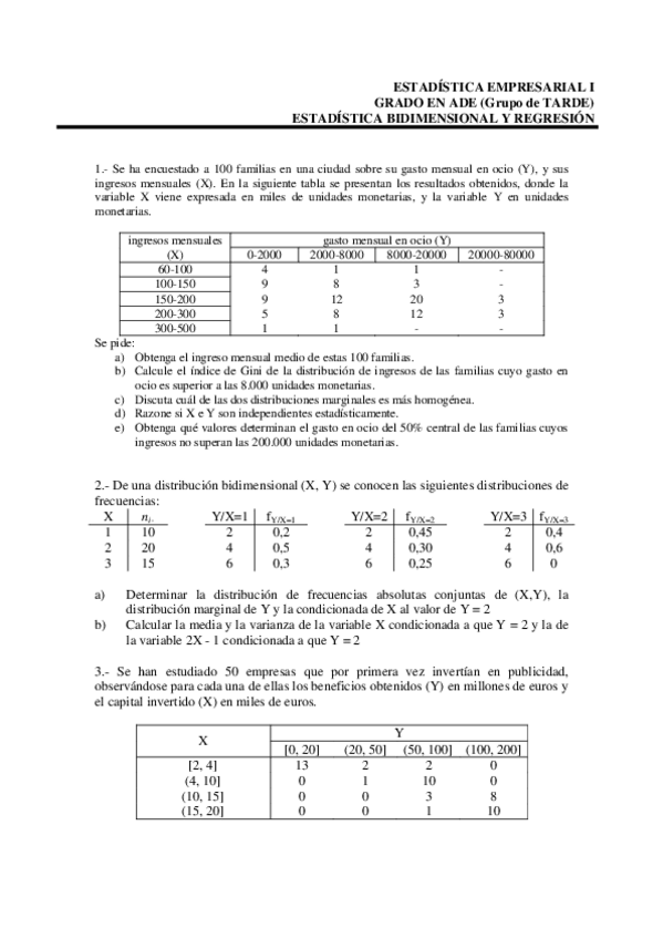 He publicado nuevos ejercicios de 1º Estadística Empresarial Ii: Soluciones relaciones