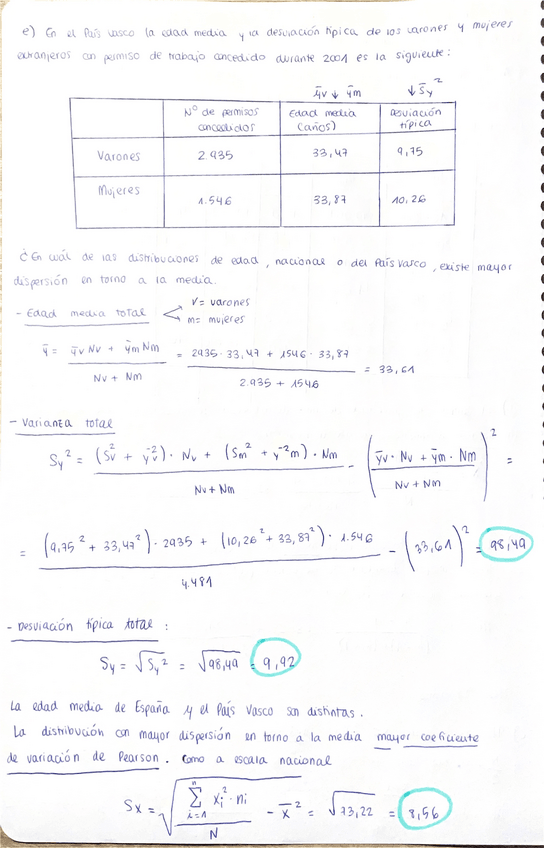 estadistica, ejercicios y formulas