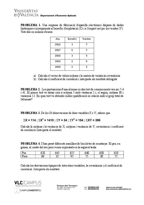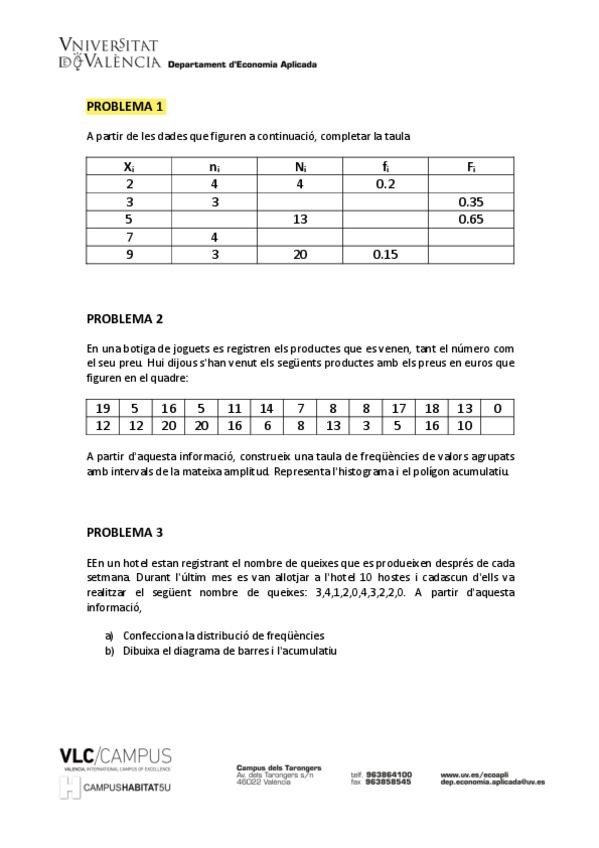 He publicado nuevos ejercicios de 1º Estadística I: Problemes-adicionals-t.6.pdf