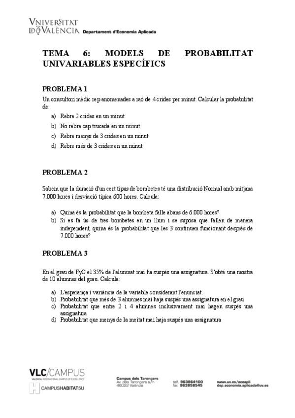 He publicado nuevos ejercicios de 2º Estadística I: PROBLEMAS-TEMAS-5-7.pdf