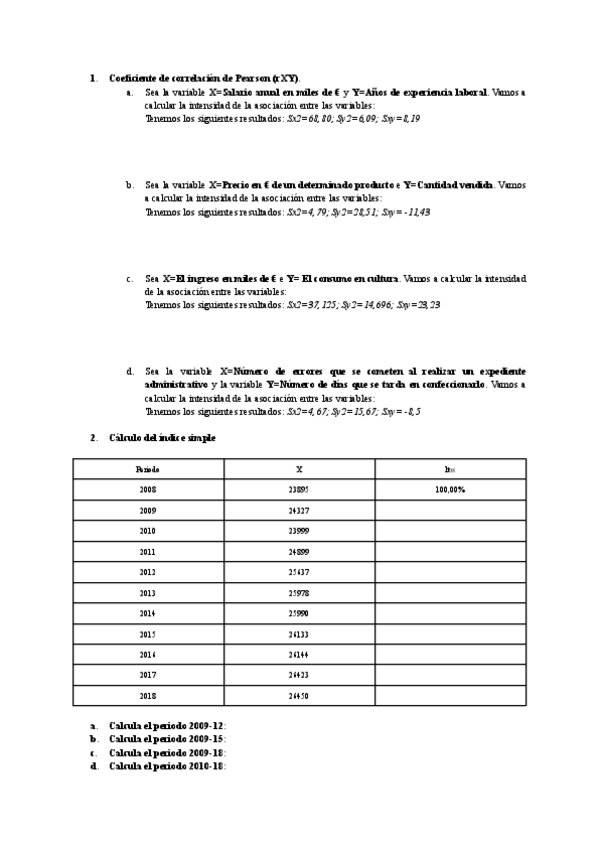 Distribuciones Bidimensionales, Covarianza y Correlación, Asociación de datos cualitativos y Números Índices.