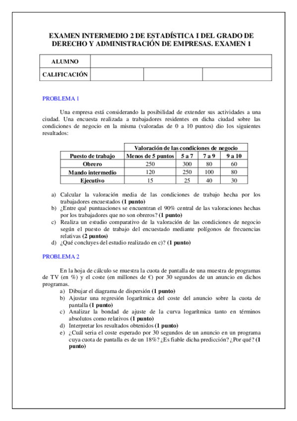 He publicado nuevos ejercicios de 2º Estadística I: Todos los ejercicios RESUELTOS.pdf