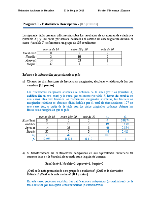 He publicado nuevos examenes de 1º Estadística I: 1º prova parcial 2.pdf