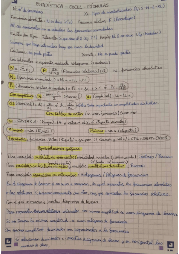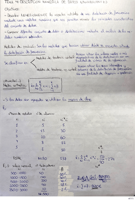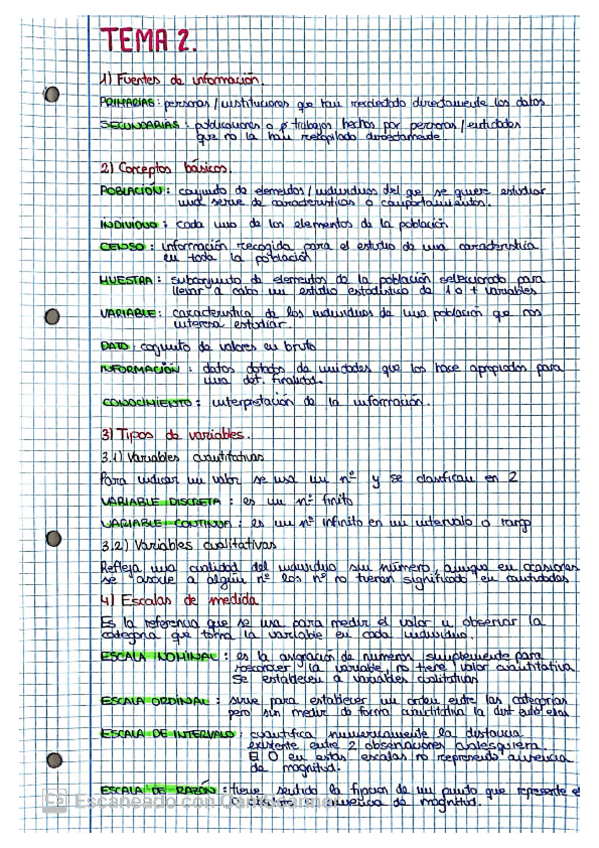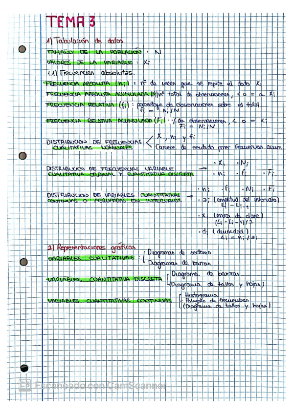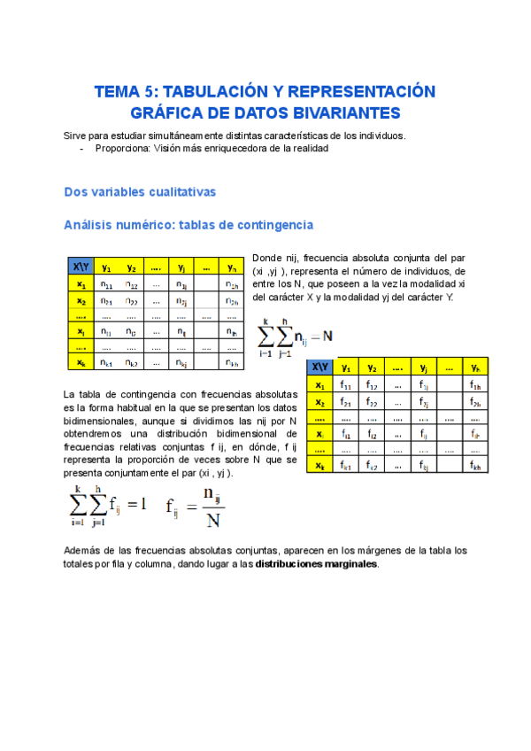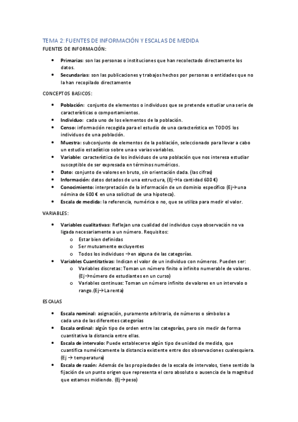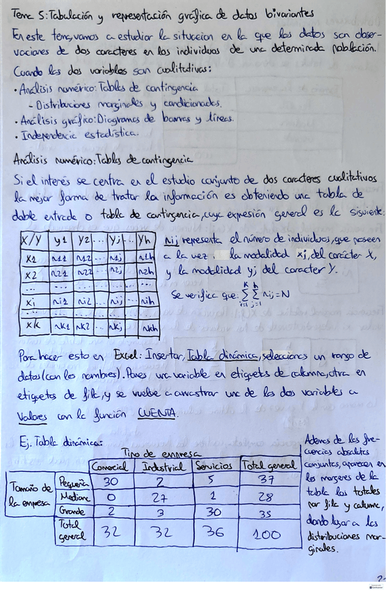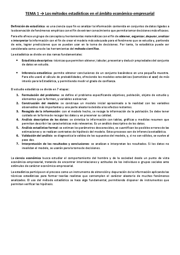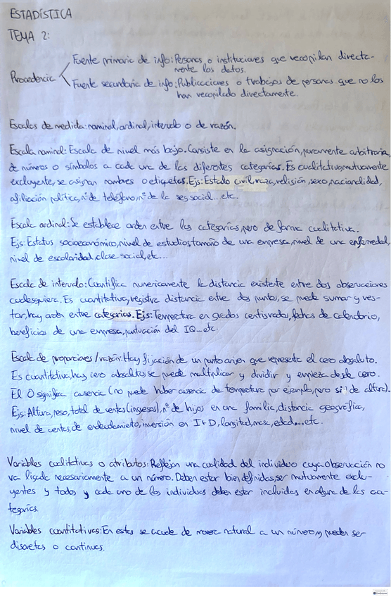 Apuntes y esquema a modo resumen del segundo tema de estadistica del primer año del grado de Economia