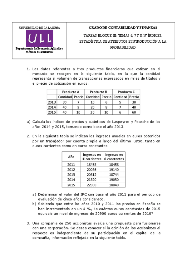 He publicado nuevos ejercicios de 1º Estadística I: tarea-3-estadistica.pdf