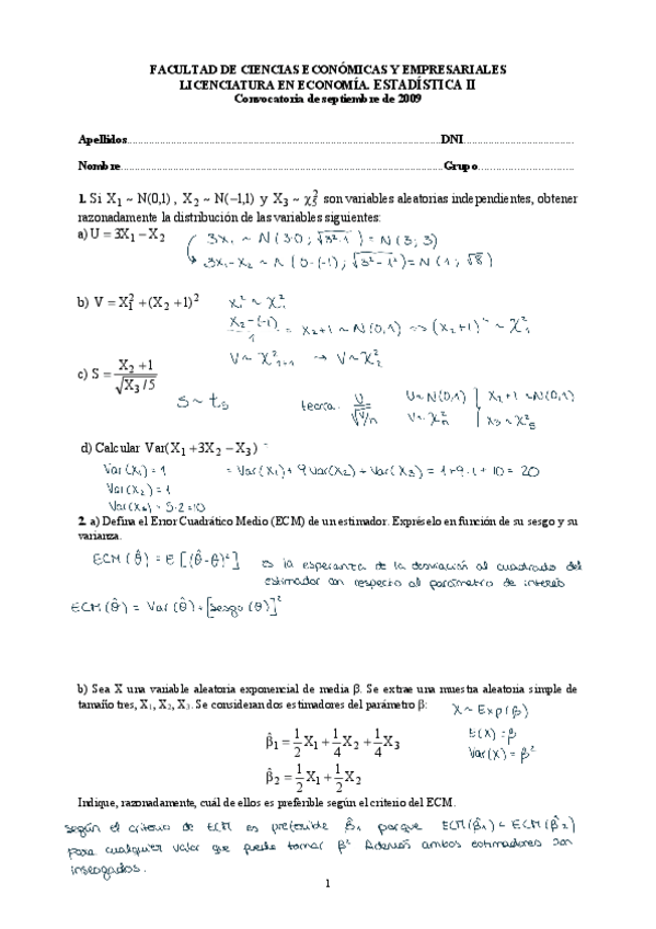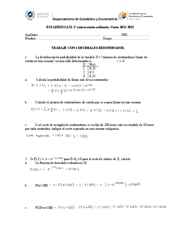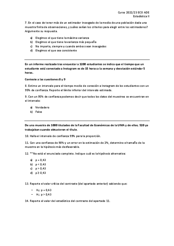 Estadística II - ECOADE - Ejercicios resueltos y enunciados