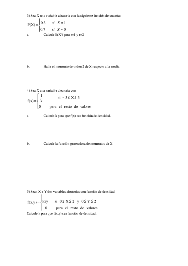 FORMULARIO sobre los ejercicios prácticos tema 1 Estadística II
