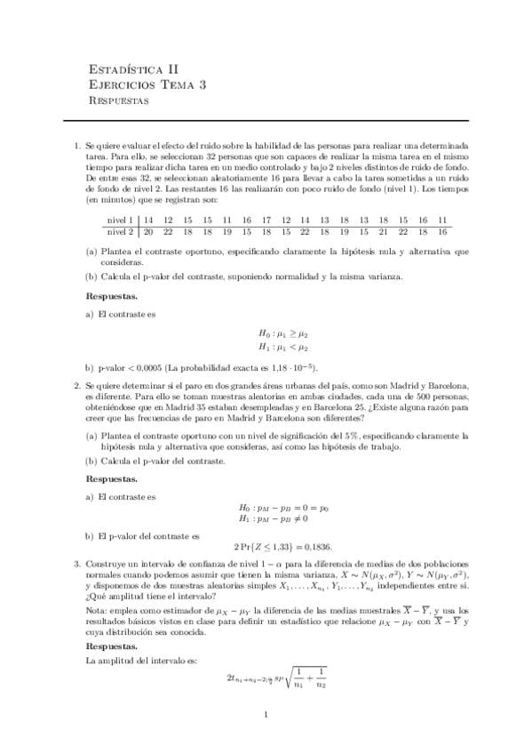 He publicado nuevos ejercicios de 2º Estadística II: Respuestas ejercicios